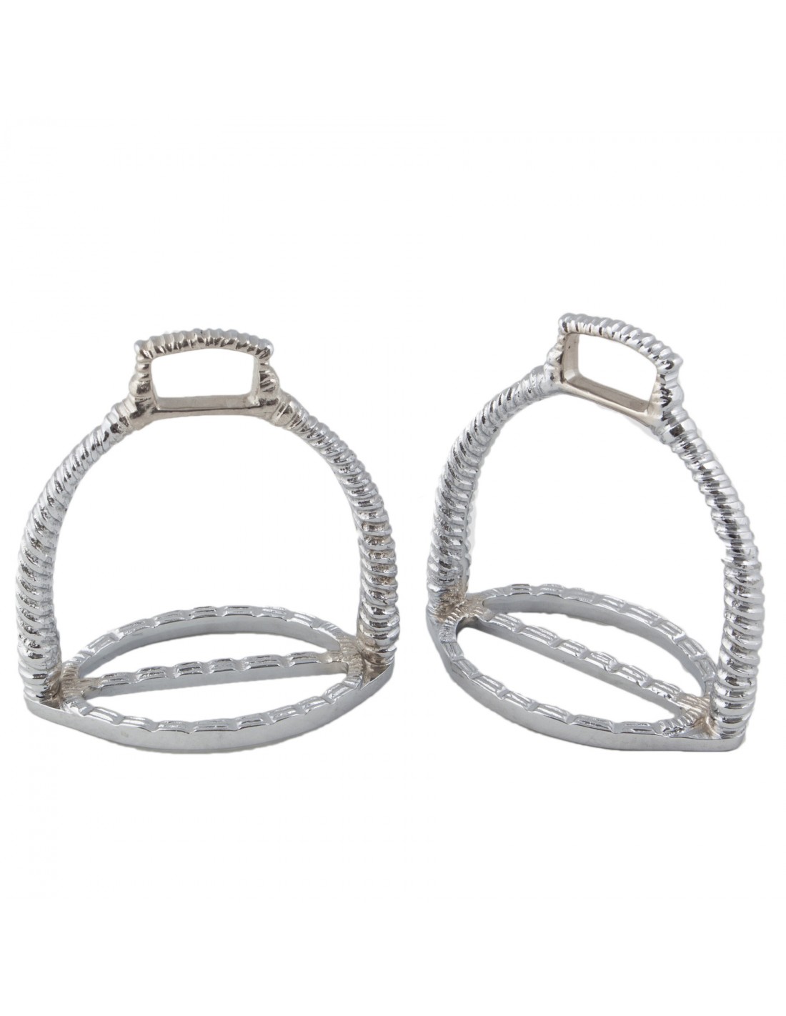 Portuguese Spiral stirrup. Chrome plated. Sold in pairs.